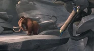 Buck hears that if Manny was nicer to Sid, they wouldn't be searching for him but Back says that he's risking his life and his kid to save his friend and that makes him a good friend. Meanwhile Scrat and Scratte dances tango while both trying to catch the acorn and it ends with Scrat holding a bridge and trying to prevent him, Scratte and the acorn from falling in the lava. He successfully saves Scratte and catches the acorn but Scratte falls in his arms and they fall in love with each other sharing a kiss.
