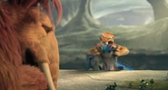 He agrees to lead the herd through the jungle’s perils to Lava Falls, where has taken Sid and her babies.