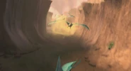 Buck takes Crash and Eddie ahead to rescue Sid riding a pteranodon over to lava falls but are attacked by a group of Quetzalcoatluses.